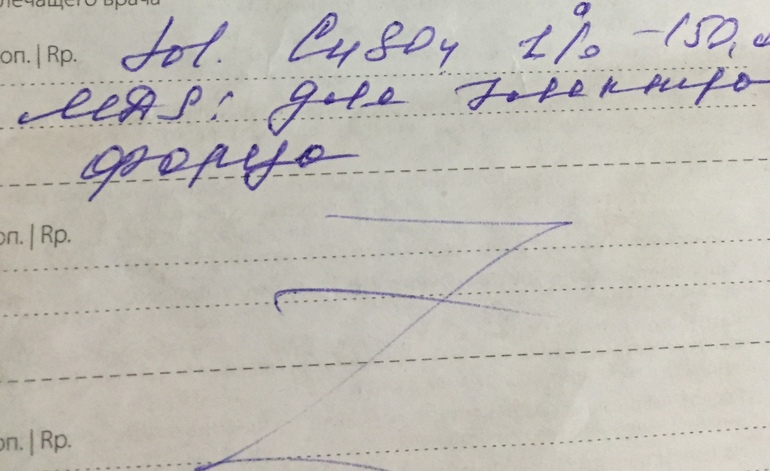 Оля в Зачатие 7 лет Переведите пожалуйста подчерк врача Опросы (только посты с опросами) Посмотрите еще 20 записей на эту тему Отменить Ответить екатерина Для электрофореза 08.10.2018 Ответить Оля Это я знаю мне рецепт названии нужен 08.10.2018 Ответить Екатерина Комлева sol.-по латыни solutionis-раствор, CuSO4-насколько мне вспоминается химия-сульфат меди2, раствор сульфата меди(2) 1%-150 мл 08.10.2018 Ответить Странный день Х Как у Вас получилось? Чаты Беременных Выберите чат: Январята-2026 Февралята-2026 Мартята-2026 Апрелята-2026 Майчата-2026 Июнята-2026 Июлята-2026 Августята-2026