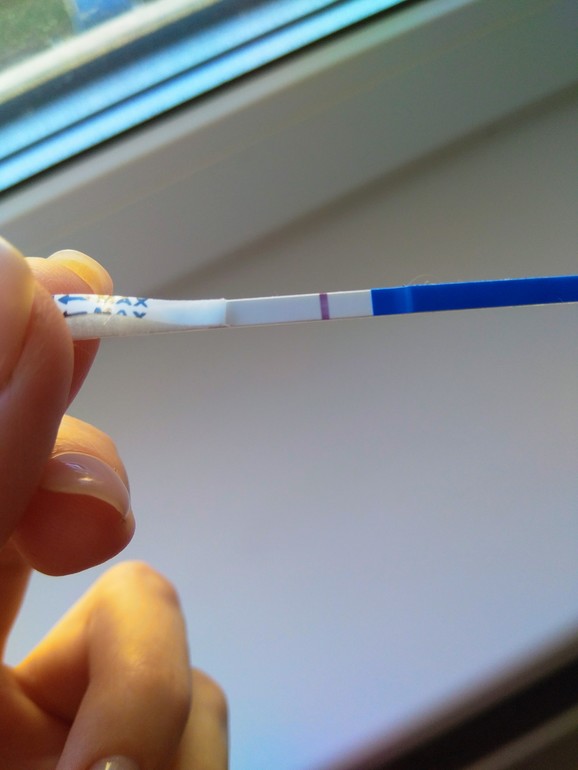 Я просто у стоматолога была, она меня на протезирование записала и сказала, что Б не должно быть во время такого лечения. Я говорю да да... Домой пришла, сделала на всякий и виду такую ели ели полосочку....