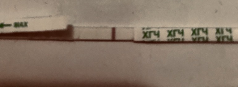 У меня такая полоска была (даже наверно поярче) на 16дц, то есть ещё даже овуляции не было...)) решила проверить.. расстроилась( потому что раньше они мне при 100% отсутствии Б не показывали ничего