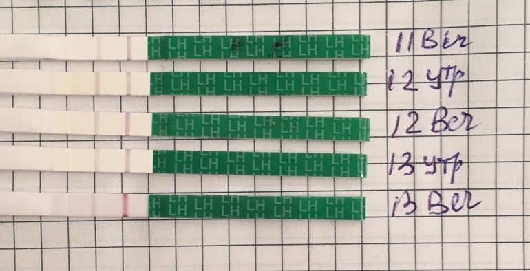 Овуляция( тесты на овуляцию)Сегодня 13 дц, цикл вроде всегда 28 дней, стали планировать (планируем третий цикл), и цикл стал 30 -31 день. Решила отследить по тестам. Ведь бледнеет же? Мне показалось , что сегодня в левом яичнике чуть стрельнуло , но слабо (обычно чувствую хорошо, в прошлом цикле - справа). По тестам же похоже, что О сегодня? Па был вчера, стоит ли сегодня повторить? думала через день. Или поделать тесты же пару дней. Не пойму, с прошлой беременностью, тоже какие-то тесты не яркие были. Фото: