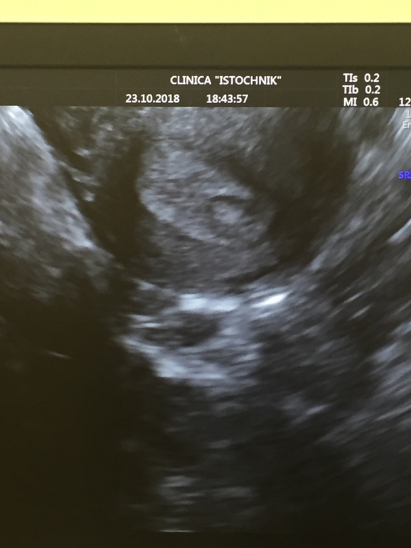 Эндометрий уменьшился с 16 до 11 мм, ЖТ почти без кровотока (прогик упал до 13,5 нг/мл). Стал часто появляться тонус. Еще в церв канале вероятно какие-то выделения. Возможно, скоро начнется мазня.