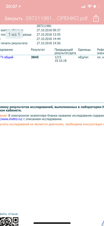 Воооот! Понимаете!!!! Как такой хгч может быть???? Инвитро может ошибаться?