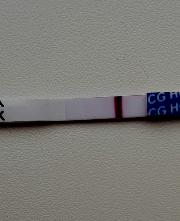 Для меня это полоска , она розовая , реагенты более серые или вообще когда смотришь и виднеется просто черточка белая ,где должна быть вторая полоска...