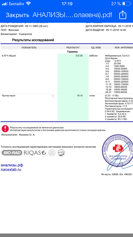 Результаты анализа на 3 день задержки. Не маленький ли ХГЧ???