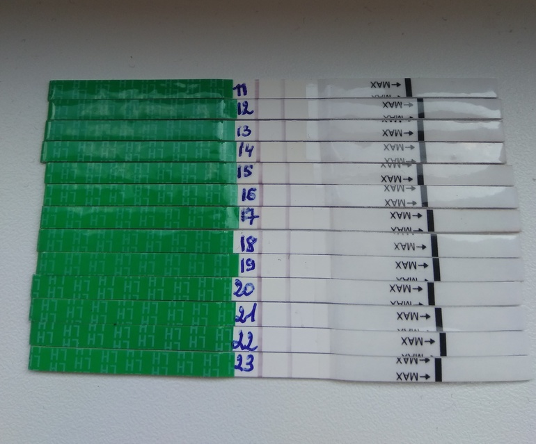 Вот график, я его под конец забросила, надоело, а вот тесты на овуляцию, ярче контрольной так и не стали