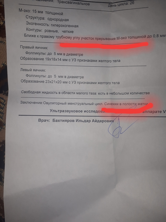 Фолликулометрияне выдержала , тем более вчера сильно колол левый яичник, очень тянул, сходила сейчас на узи. Овуляция была и в правом и в левом, двойная )))) что очень радует ))) неужели с двойной овулей ничего не получится? Или я рано расстраиваюсь?? Сегодня 28 день цикла. День х в понедельник ....еще Нашли какие то синехии...что это ?! К врачу пойду субботу , может было у кого такое ? Вот фото узи