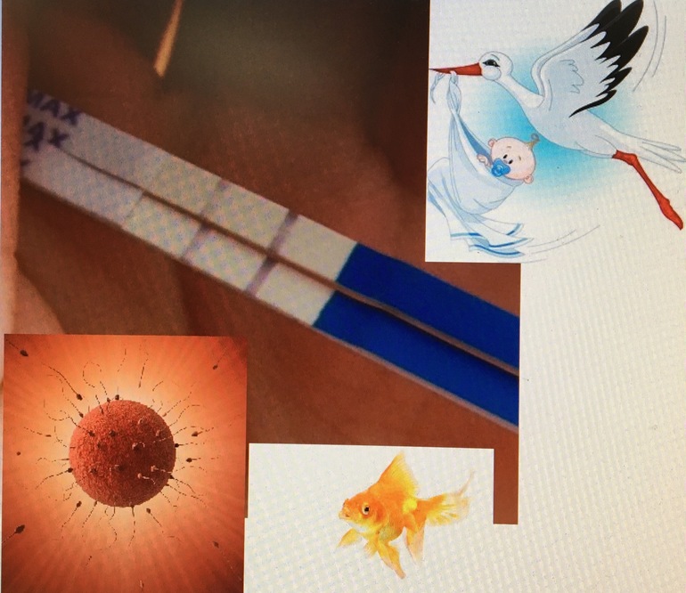 находите картинки зачатия и Б, можно фотографии удачных тестов на Б, аистов, золотых рыбок и жаб (да-да, жаба приносит удачу). И собираете в коллаж) Можно распечатать, можно просто хранить на телефоне/компьютере и периодически поглядывать)