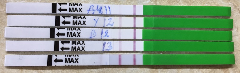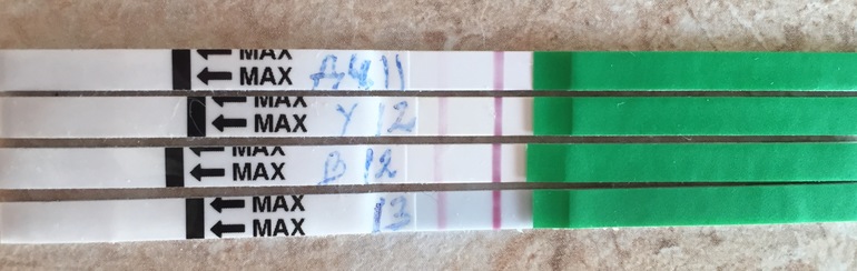 нижний фрау вчера утром. Выше реал тест вечер. Дальше реал утро и вечер. Но фолликул в другом яичнике был 11,5. Модет ли тест показывать О, если ее нет
