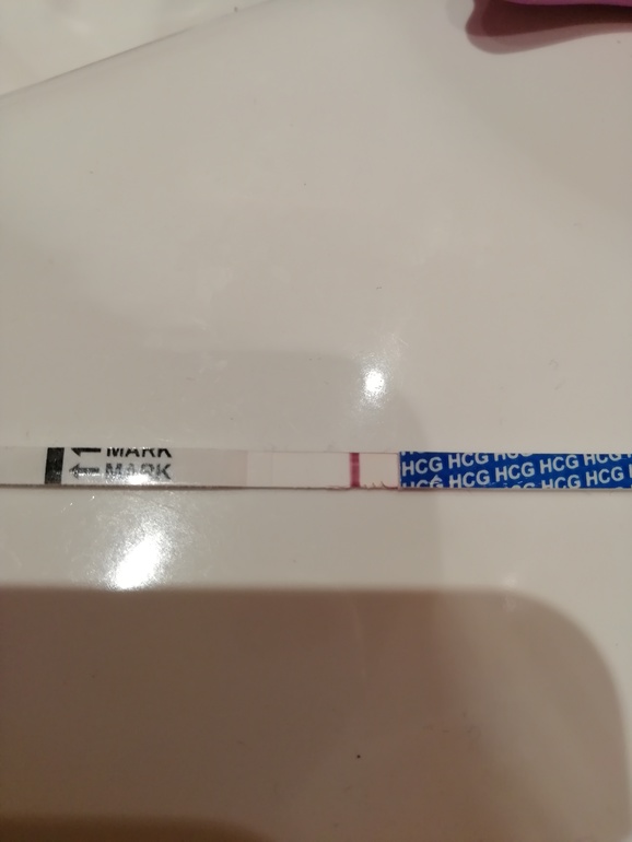 Пусто, а то что видите это реагент, он на всех тестах, вернее можно разглядеть, беременную полоску ни с чем не спутать