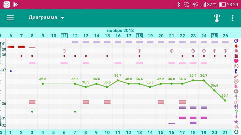 Базальная температура, ТТ, графики БТДнвочки,есть у кого-нибудь пример графика при приеме инозитола и без него? Я этот цикл впервые начала со 2 дня пить инозитол. И график у меня стал интересный очень. Раньше БТ прыгала как могла 36,6-36,7 в среднем, иногда и больше разница особенно первые дней 20. Заборы прям, а не графики. А этот месяц чуть ли не прямая линия на уровне 36,6. И вот западение кажется к О. Жду завтра подъем. ПА был последний 2 дня назад, а сейчас я от мужа далеко и приеду только через 3 дня. И вот из за этой БТ я не начала пить утрик. Мне Г прописала на 3 месяца фемостон для подготовки к стимуляции. А у меня О если и бывает,то после 20 дц. И редко.Может из за инозитола БТ ровные стала. Это же хорошо?