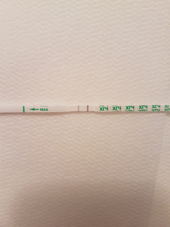 Тот, что до задержки я даже не фоткала- реально подумала бракованный тест ). А вот в день задержки такой был: