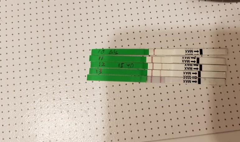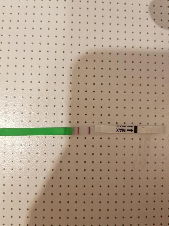 Он ещё поярче может быть, у меня положительный когда мочишь, то тестовая появляется быстрее контрольной и сразу яркая и хорошо видно, а если тень просто при замачивании, а потом когда подсыхает и полоска ярчает, то ещё не положительный