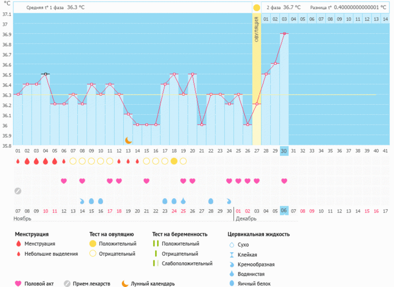 Базальная температура, ТТ, графики БТЭто первый цикл после отмены ОК. В начале цикла делала тесты на О и вроде как по тестам О была на 18дц, но по графику БТ похоже тесты соврали. И вот я уже жду 7.12. М как тут бт начинает подниматься. Сегодня вообще 36,9. График сам выставил О. Я эту О не чувствовала совсем, никаких выделений небыло, обычно у меня ЯБ много, а тут ничегошеньки. Так вот в чем вопрос была ли все таки О? И нормально ли это что такой длинный цикл? И если О была то не поздно ли? Такое вообще нормально что О на 27дц??? Никогда у меня не было такого.... подскажите.