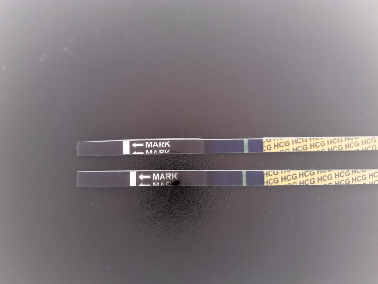 Ждем дня Х (Признаки беременности / Тесты)Девочки, неужели Фраутест 15 так реагентят???Сегодня 32 дц, неделю назад отменила дюфастон. Признаков мес. нет поэтому утром сделала тест. А вечером стало мазать.Кто сталкивался с такими реагентами? Для сравнения тест что делала на 26 дц.Как думаете?