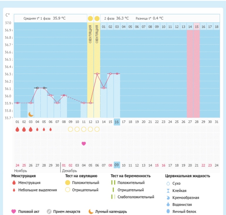 У меня овуляция на 12 дц. В ночь с 6 на 7 декабря начало тянуть в районе левого яичника, в общем все признаки овуляции. 8 декабря ожидаемо поднялась бт.