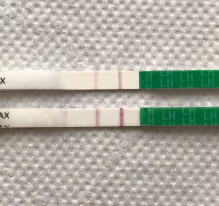 Овуляция( тесты на овуляцию)Вроде бы две полосочки но одна бледнее другой тесты все разные я уже запуталась с 12дц делаю тесты .В том месяцы цикл сместился с 29 до 34 . И посоветовали искать овуляцию по тестам