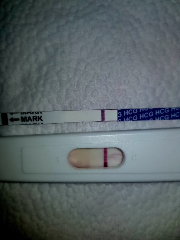 Я на нижнем вижу, но лучше переделать. Купите ещё один самый дешевый тест. 5 дз уже любой тест должен показать. Пусть это будет карапуз)))