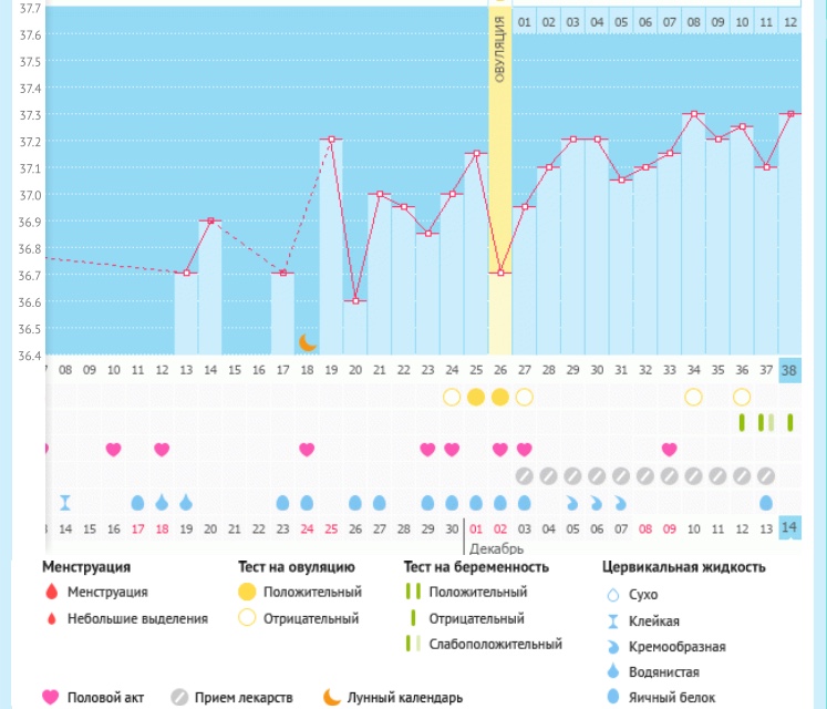 Я уже несколько циклов подряд измеряю именно температуру тела, к месячным она всегда опускается, но в этом цикле держится высоко. Это первый цикл приема Дюфастона. Месячных не жду завтра, сегодня t 37,3.
