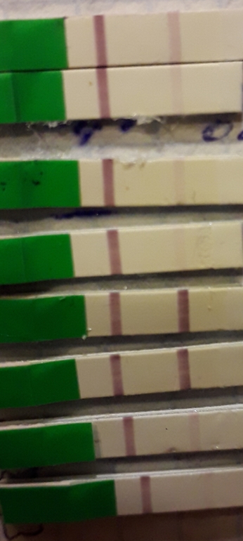 Да,я знаю,что полосочка должна сравняться с контрольной,но у меня за 7 дней эта была самая яркая,теперь опять слабая,будем надеяться,что о всё-таки была!