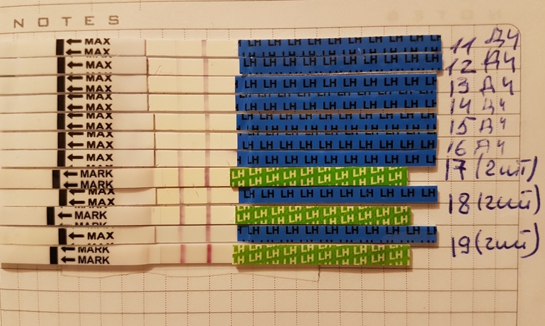 Овуляция( тесты на овуляцию)Девочки, вот с подругой сделали тесты. С 9 д.ц.начали 2 раза в день. И не поймем было или нет, все полоски бледные какие-то
