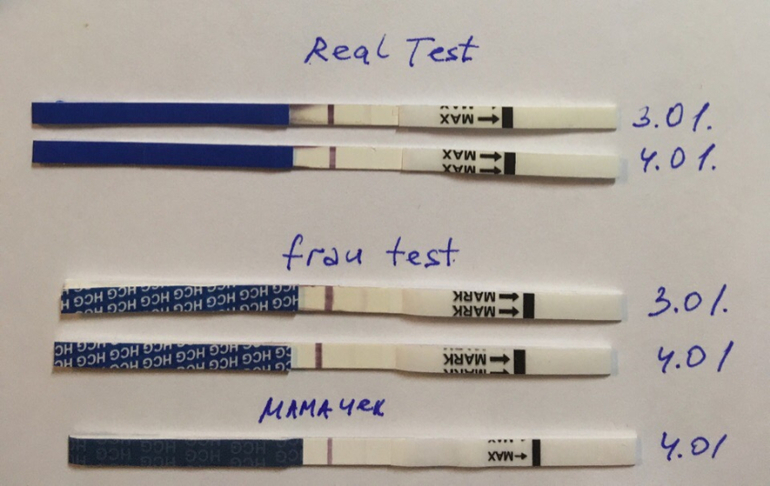 еще больше запуталась. "Мама чек" остался таким же, как вчера вечером. "Реал тест" стал таким же, каким был 3 января, позавчера. Ярче стал только "фрау", но на них часто грешат, как на недостоверные. прикладываю фото без обработки и с затемнением... что скажете?