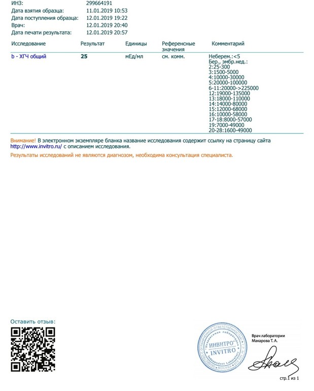 Сегодня пришел результат анализа крови на хгч. Да, по нижней границе нормы, но я сдавала за 4 дня до месячных и при очень слабоположительных тестах.