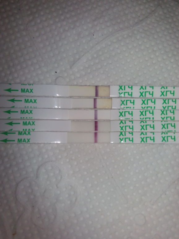 На двух нижних что то розовеет , или вторая полосочка ....или реагент ...посмотрите когда высохнет, ну и конечно динамика важна