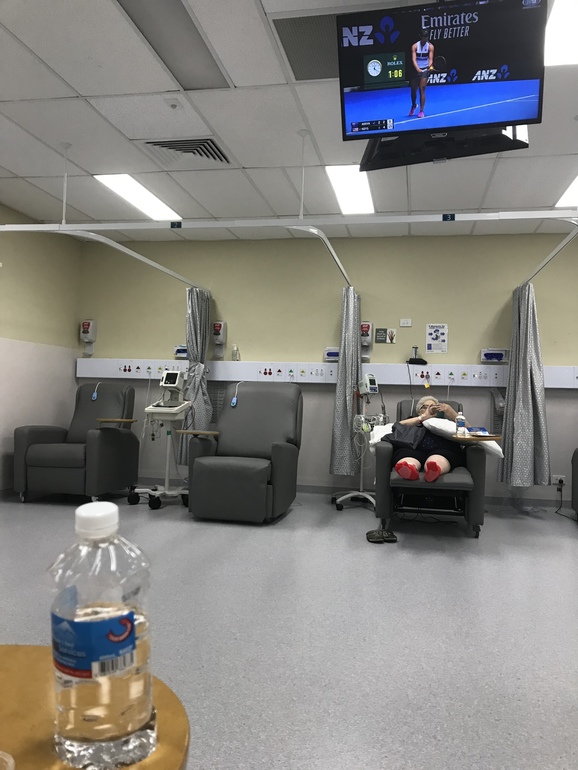 Потом уже встала с кровати - посадили в кресло и повезли в общий зал.