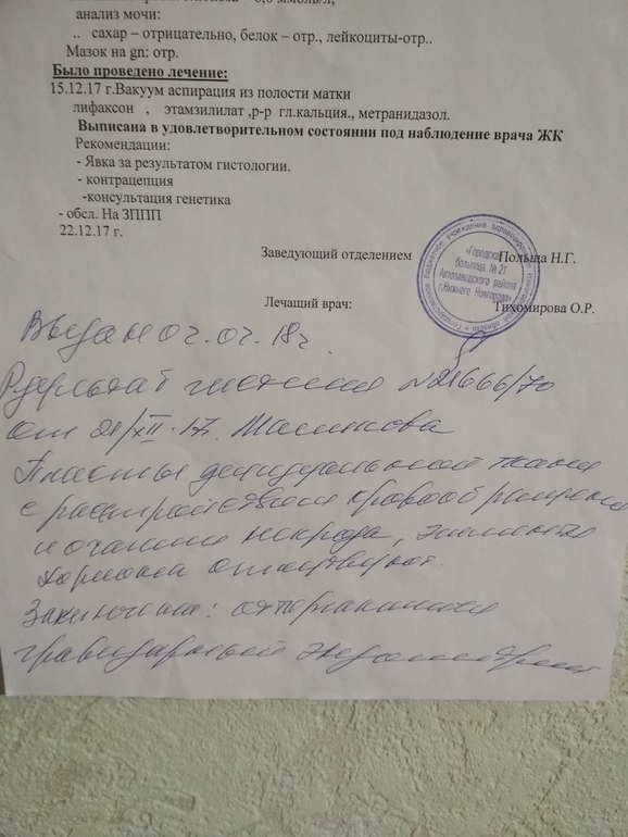 Прям в больнице перед чисткой спросили, хочу ли я провести генетическое исследование плода, т.к. возможно причина ЗБ в генетическом сбое. Я согласилась, они там взяли материал и отправили в платную клинику неподалеку, я потом ездила забирала результат. Итог: трисомия по 22 хромосоме у плода, т.е. там хромосомы неправильно разделились, плод развивался с отклонениями и был нежизненноспособен( организм сам отторг, начался выкидыш когда я лезла на операционное кресло( потом я была на консультации у генетика и он сказал что это естественный отбор, можно планировать снова.