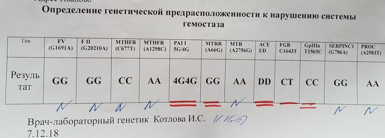 Замершая беременностьДевочки, получила результаты анализов на полимофизмы.