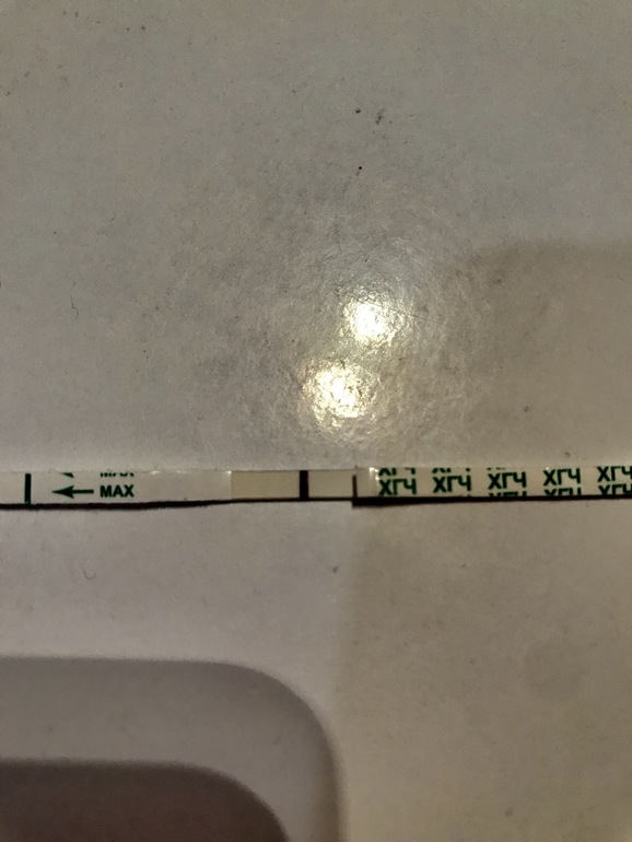 Это просто реагент так "недоплыл". Полоски там нет. У меня такие полоски и не в Б бывали сами по себе