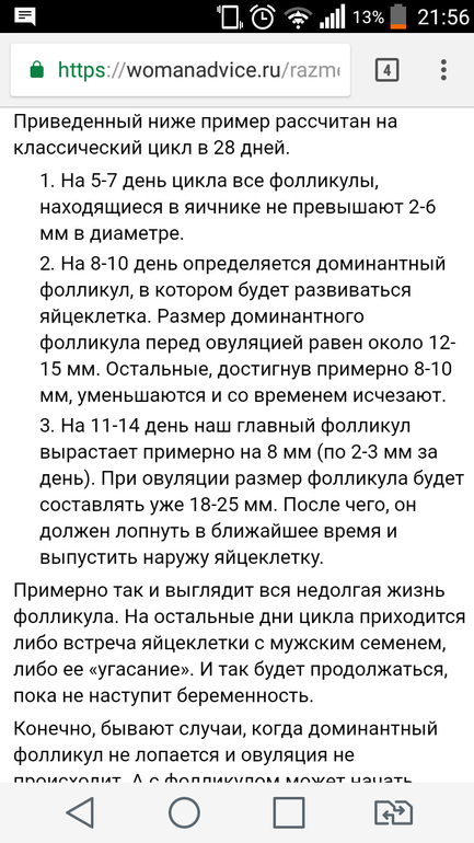 Месячный циклНа 6й день цикла в левом яичнике доминантный фолликул размером 0,69 см.... как он вообще растёт и на каком размере должен лопнуть?