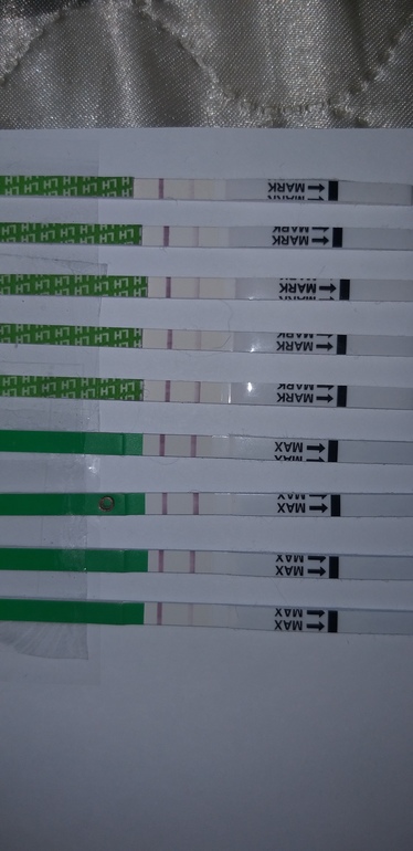 Овуляция( тесты на овуляцию)Всем привет! Посмотрите, это уже положительный?? Делала с 9дц, сегодня 16дц самый нижний. Второй цикл стимуляции, еле еле один фоллик вырос на 14дц до 15мм. На узи только завтра