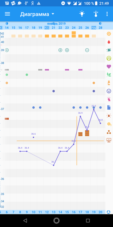 Я веду на iOS сейчас два )) Glow и Flo. Но в каждом есть свои недостатки, в частности по графикам БТ, которые я веду. А тут такой красивый у вас.. с температурами