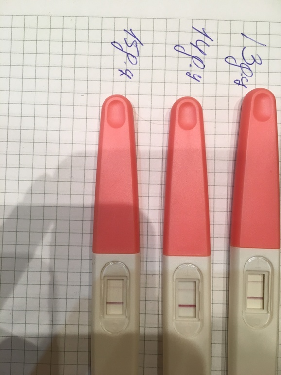 Не было пока положительного теста. Полоски должны быть минимум одинаковые по интенсивности. Продолжайте наблюдения )