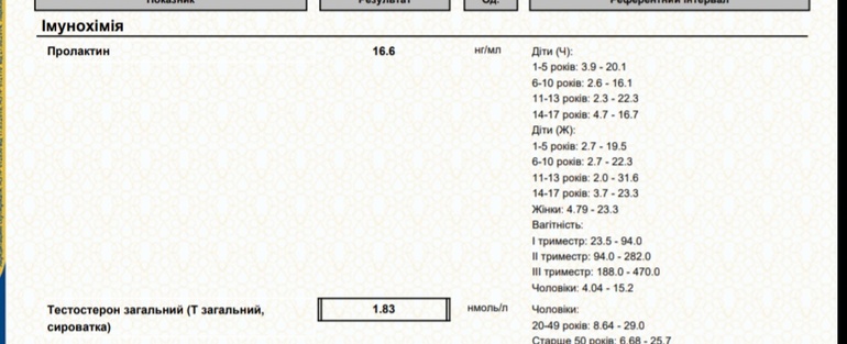 У меня тестостерон всегда повышен, врач сказал на зачатие это не влияет. Пролактин тоже был повышен, причем в нормы лаборатории он входил, но врач сказал надо снижать. Таблетки пила 2 месяца, после чего случилась беременность. Может конечно что то другое съиграло, может время пришло, до этого 12 лет не получалось.