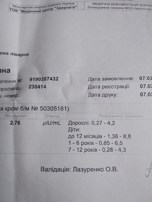 ✔️ТТГ 0,4-2,0 мМЕ/л и Т4 свободный ближе к верхней границе нормы.