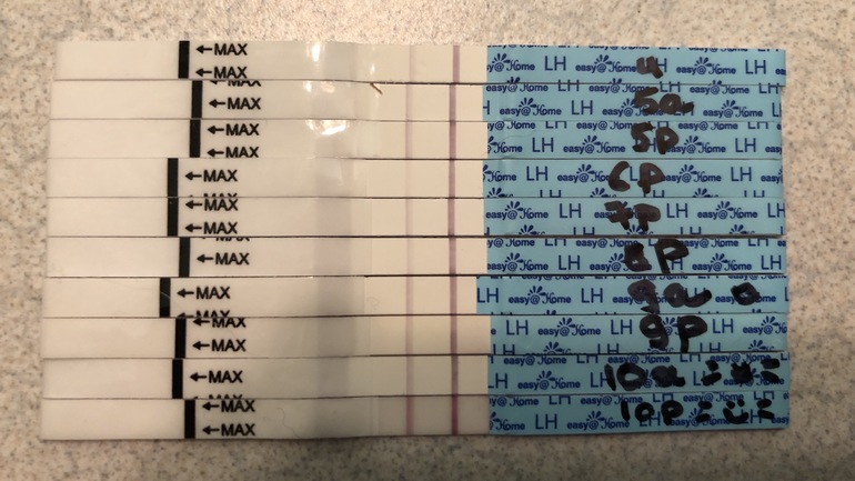 10 p - 10 день цикла, pm) Мне просто не понятно, почему тогда сегодня около 6 утра полоска была совсем не яркая, фотку не сделала с утра, к сожалению. Мне кажется, 10p еле сравнялась по цвету, а должна же быть ещё ярче для овуляции; вот я и думаю, может это ничего и не было вообще 🤷🏻‍♀️