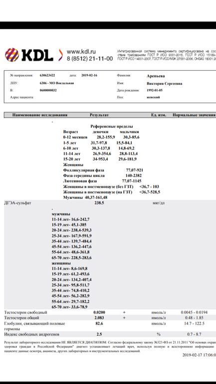 Спасибо..Я вспомнила что на узи узист спросила у меня "типа случайно андрогены не повышенные,?"молодец узист ,единственная из всех задала этот вопрос.Оказалось что реально повышены андрогены у меня...