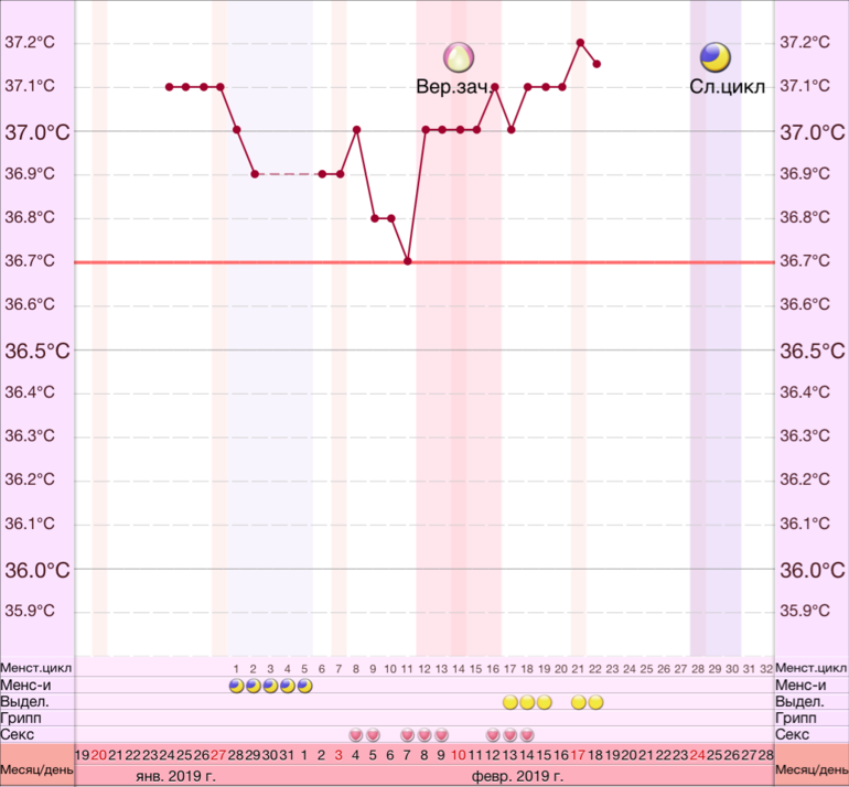 Базальная температура, ТТ, графики БТДоброго дня девочки! Я новенькая. Хочу представить на ваш «суд» свой график бт. Как думаете, возможна беременность? Понимаю что скорее глупо ещё что то конкретное говорить, но все же. Сегодня 21 дц, немного тошнит и с утра было ощущение отёчности.