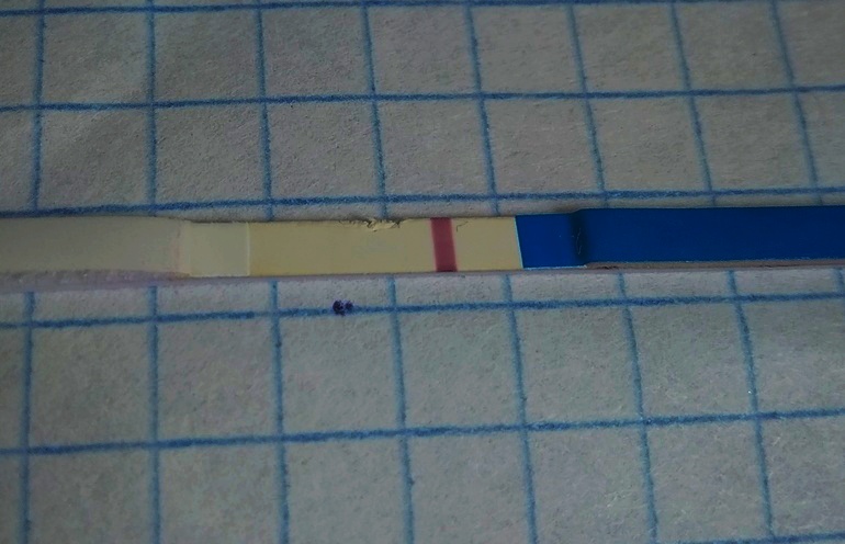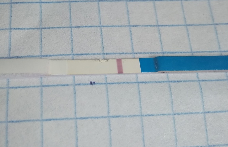 Снова посмотрела тест (в 12:30) - как будто призрак просматривается 😲 Я снова в рёв! Да что такое! Тест уберу в сторону - сижу нормально работаю, спокойная как удав. Посмотрю на тест - тут же реву. Бесит аж! Сфотографировала, но по фото ничего не видно. Честно говоря, я и сама не понимаю, есть ли там что-то. То ли реально слааааааабенькая полоска, то ли мой разум так шутит жестоко.