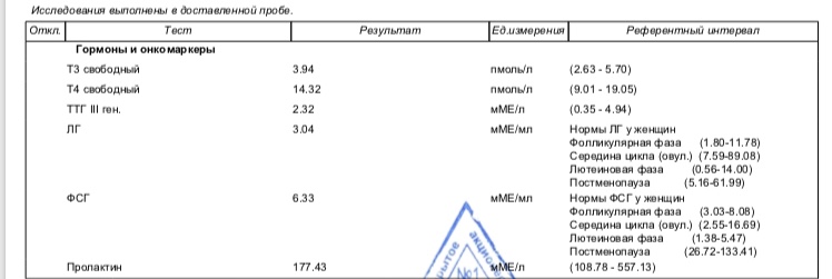 По итогу ТТГ - стал 2,32 (был 4,74), ФСГ - стал 6,33 (был 8,46), Пролактин - стал 177,43 (был 397,82).