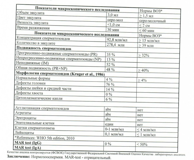 Могли бы мне дать консультацию по результатам спермограммы. Всё ли нормально?