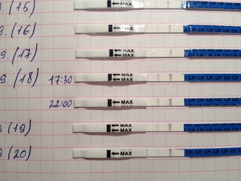 Овуляция( тесты на овуляцию)Здравствуйте, девушки. В ожидании овуляции, делаю тесты каждый день вечером. Посмотрите на фото, как думаете на 18 день (18) - это отрицательный или положительный тест? Я посчитала его отрицательным, в надежде что полоска вот вот поярчает, а она тускнеет. Неужели "ушами прохлопала"? В прошлом цикле овуляция была на 22 ДЦ.