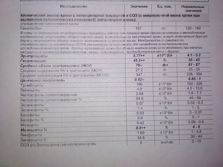 Доброго времени суток! Да всё же вроде хорошо у Вас!Лучше расскажите мне, как Вы такой хороший показатель эозинофилов держите?) У Вас ни на что аллергии нет?Сама недели полторы назад сдавала - эозинофилы повышены ( очень!)и моноциты ( незначительно)🙄😥