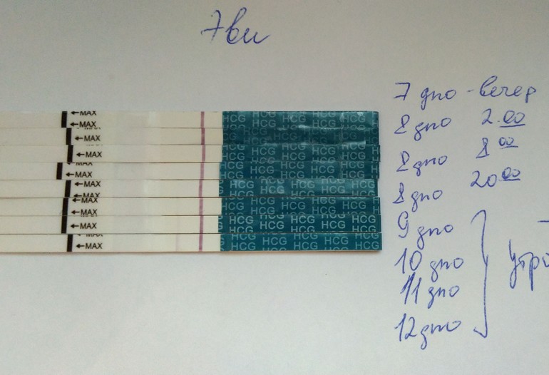 На 8 ДПО чудом в ящике обнаружились китайские тесты и на них тоже уже было видно полосочку, теперь их делаю по вечерам. По яркости они примерно как эви только дешевле в разы,🤑