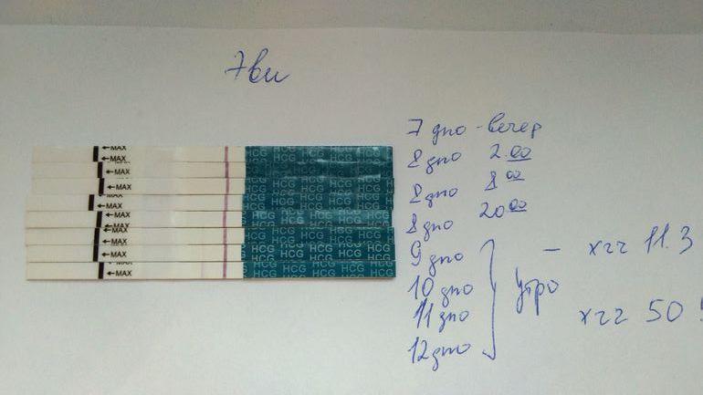 Тесты склеены поэтому придется считать по порядку. 4й снизу это 9дпо(ХГЧ 11ед) предпоследний это 11дпо(ХГЧ 50)… и вот только сегодня такая яркая полоска.