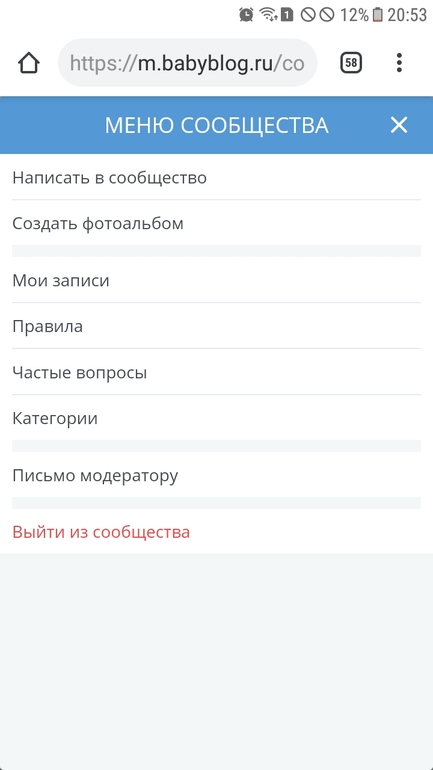 В мобильной версии возле надписи написать в сообщество троеточие, открывается меню