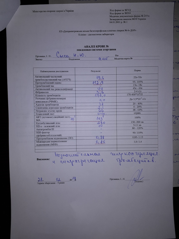 Если есть возможность сдайте еще агрегацию тромбоцитов она тоже показательная.