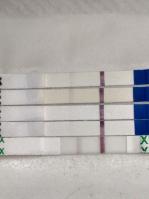 Тесты могут прыгать. Становится либо ярче, либо бледнее. Вот мои тесты при ХГЧ 81+. Тоже переживала.